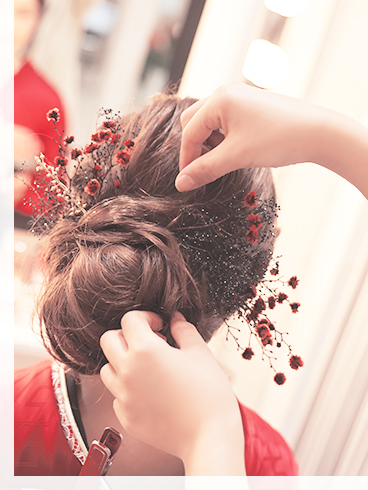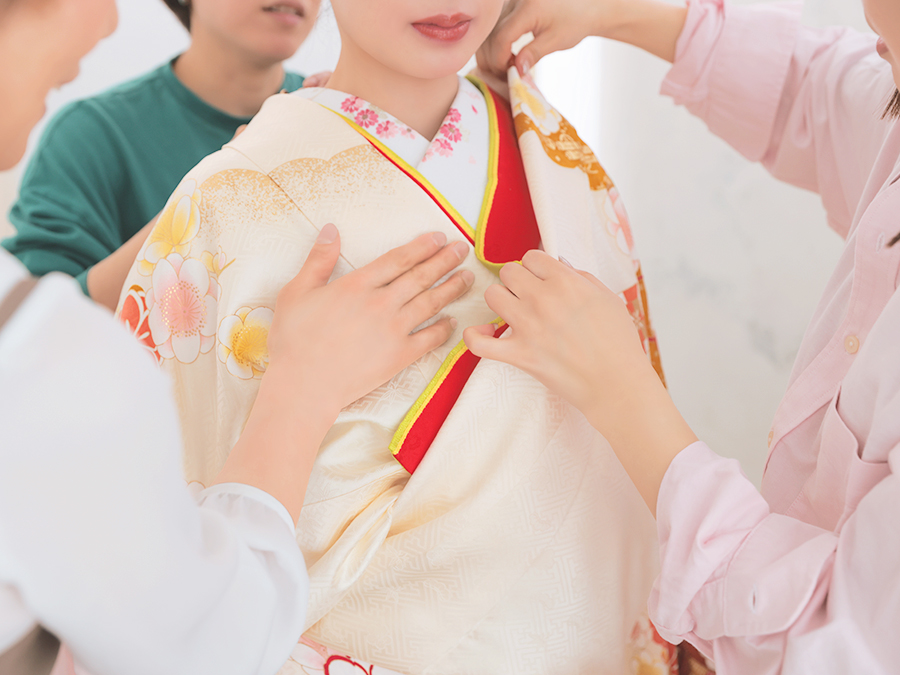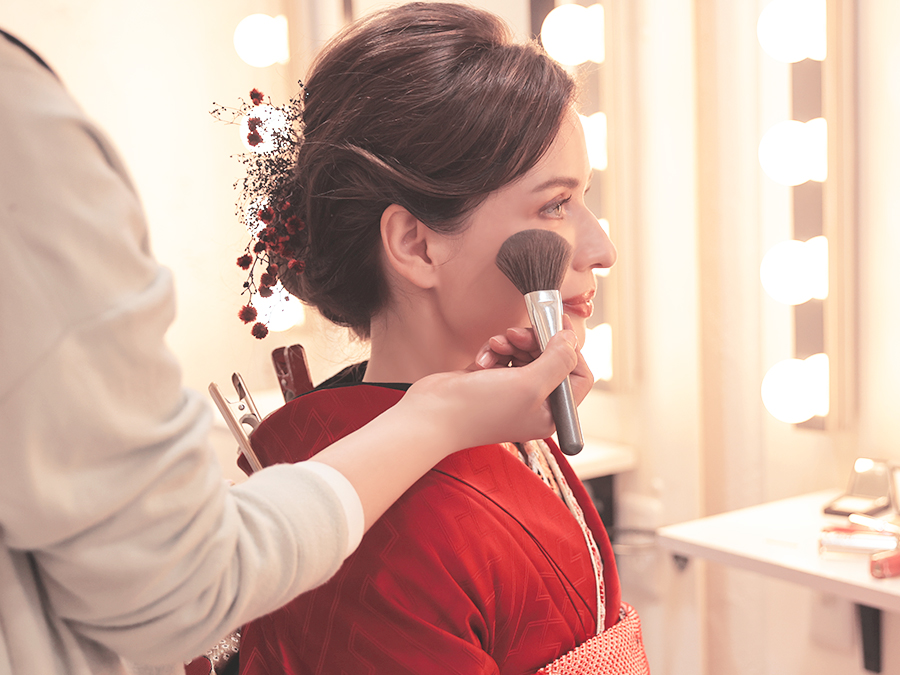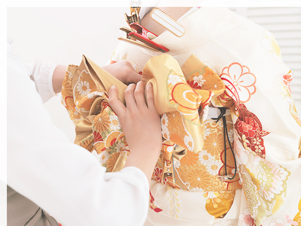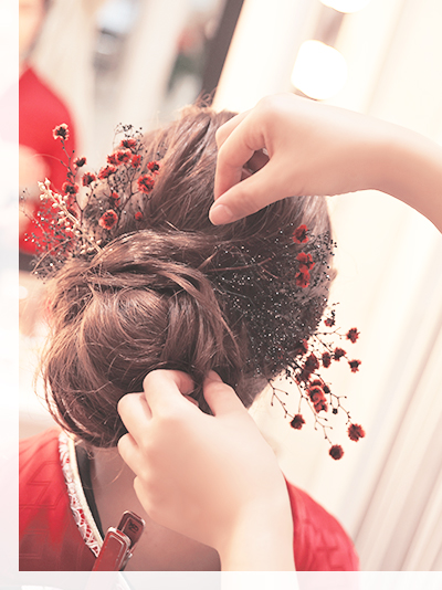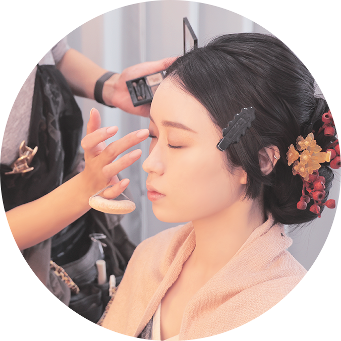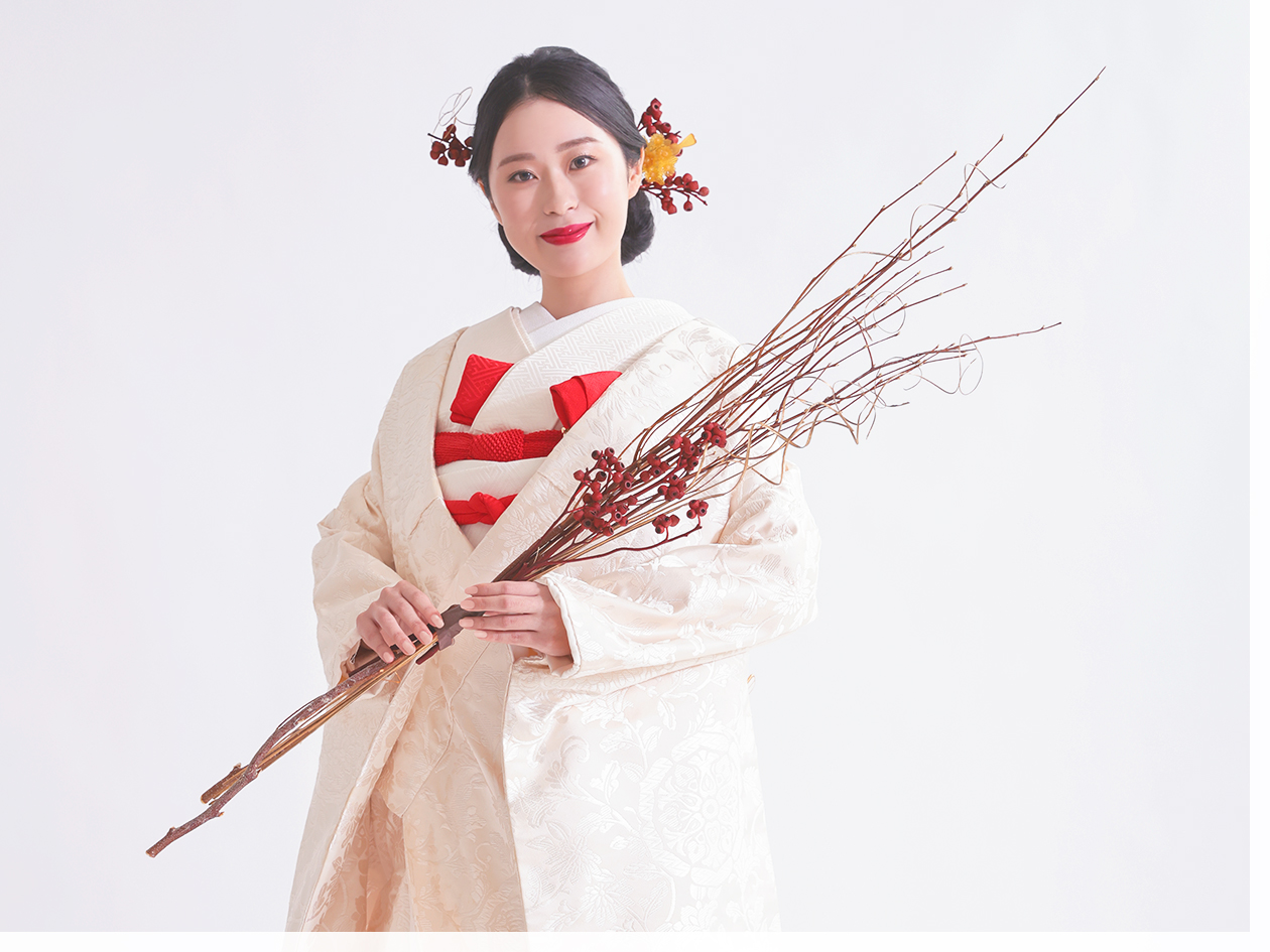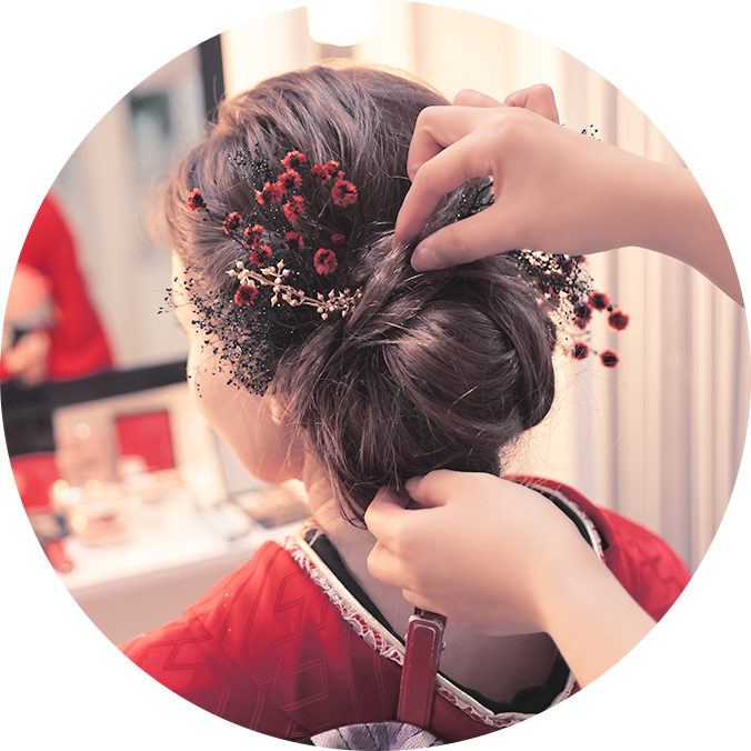 主に結婚式場・イベントホール・レストラン・神社仏閣などで行われる各催事での、着物の着付けや衣装のコーディネート・スタイリング提案から、ヘアメイク・写真撮影、着物・ドレスなどの各衣装レンタルまで、すべてのサービスをワンストップで承っております。